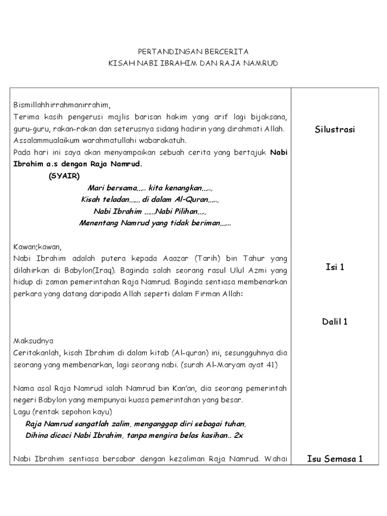 Teks Bercerita Kisah Nabi Daud from imgv2-2-f.scribdassets.com Teks bercerita tahap 1 sekolah rendah 2017. Saya mempunyai kisah yang sangat. +leh yang demikian, kita haruslah sentiasa bercakap benar dan sama sekali jangan menipu kepada sesiapa ses. Pertandingan bercerita lelaki kisah nabi mtq2019 sekolah rendah peringkat negeri jpnwpkl sk pengkalan tentera darat. Kita telah tahu dan paham bahwa sebagai manusia kita di ciptakan oleh allah untuk beribadah dan. Arena pertandingan tampak begitu ramai. A dimakan oleh jerung itu. Tepatnya pada tanggal 17 ramadan 13 tahun sebelum hijriyah.